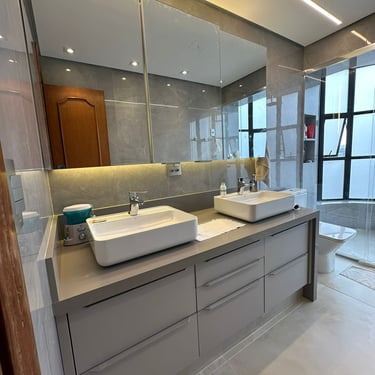 Desenvolvemos soluções inteligentes para roupeiros, cabeceiras, bancadas de estudo/trabalho e nichos, garantindo o aproveitamento total do espaço. Utilizamos materiais de primeira linha e um design que prioriza a ergonomia e a estética acolhedora.